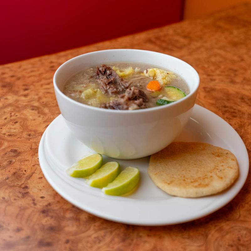 Beef soup, corn, squash, carrot, yucca, potato, cabage, 1 tortilla